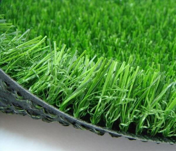 第三层,也是表层,为草皮层。依制造的表面形状有绒毛草皮、圆环形卷曲状尼龙丝草皮、叶状聚丙烯纤维草皮、尼龙丝编制的透水草皮等。这一层也要用乳胶粘在橡胶或泡沫塑料上。施工时要全面涂胶,依次压紧贴牢,不能起皱折。